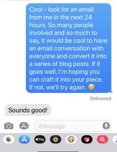 Russ here. So I texted Chris (Hislop) on Saturday…